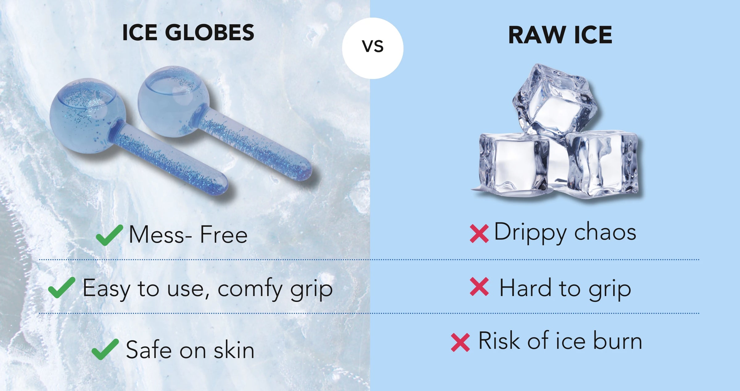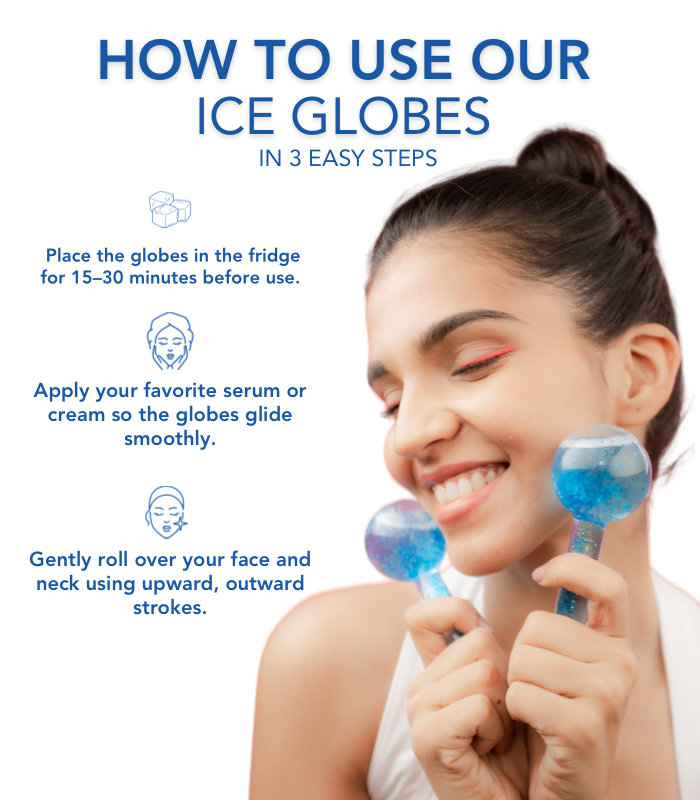 The Ice Globes use cold therapy to stimulate blood circulation, tighten the skin, and calm inflammation. As you glide them across your face, they deliver a spa-like experience that boosts collagen production, refines pores, and visibly enhances your skin's natural glow.